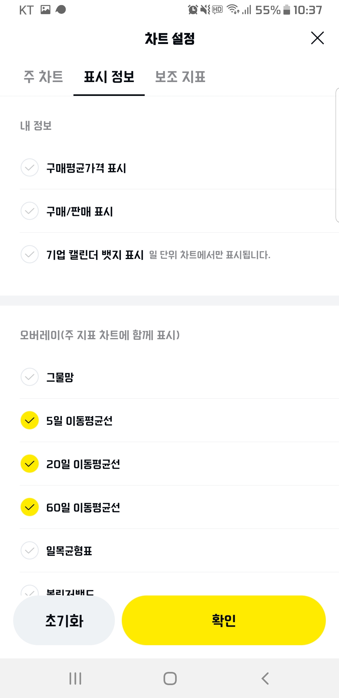 주식 차트도 다양하게 설정할 수 있도록 지원합니다