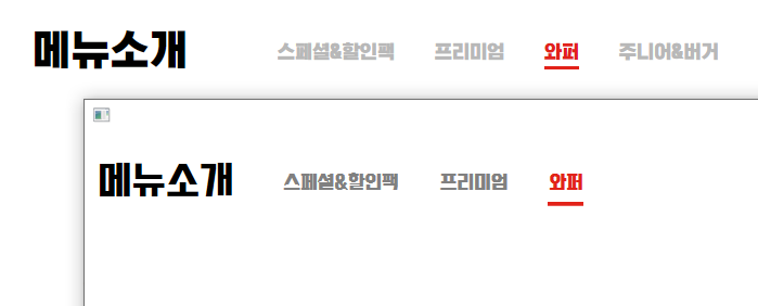 실행해보면 비슷하죠? (버거킹 폰트만 있으면 완전 똑같이 할 수 있지만 비슷한 배민 도현체를 사용)